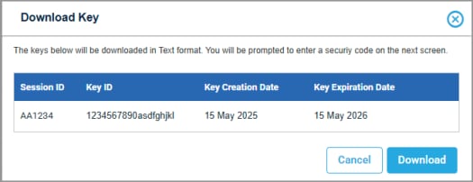 - Select Download, confirm your identity by completing multi-factor identification, then Download the key to a file directory.