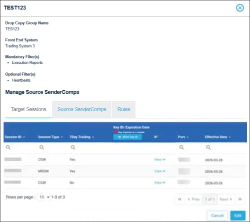 - Select Edit, then update Drop Copy Group details as required: