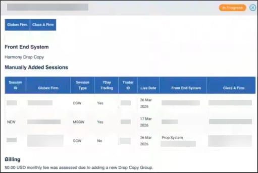 Note: Customers receive one free Drop Copy Group, a fee is incurred for each additional instance.