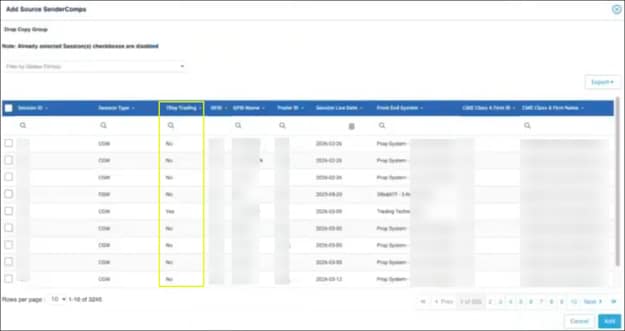 - Deleting Drop Copy Groups - An additional delete function is available from the Target Sessions tab (select a Drop Copy Group, then click Delete Group).