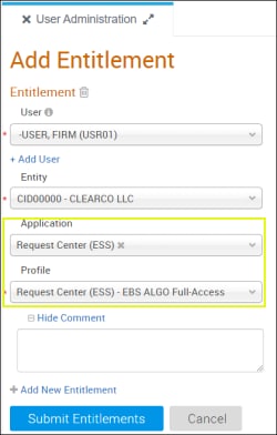 Note: To authorize users to Edit Algorithmic Trading system information, an Admin Manager or Application Admin must use the User Administration function to add Request Center - EBS ALGO Full Access entitlements.