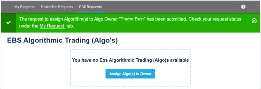 - Select EBS Requests > Algorithmic Trading.