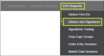 - From the EBS Requests menu, go to the Globex User Signature function.