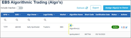 Note: To view Algorithmic trading systems associated with the GUS (before expiring), search the Algorithmic Trading function for the GUS, then expand the Algorithm Name field.