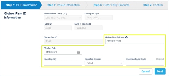 - Globex Firm ID Name: The Globex market participant name must be unique at the entity.