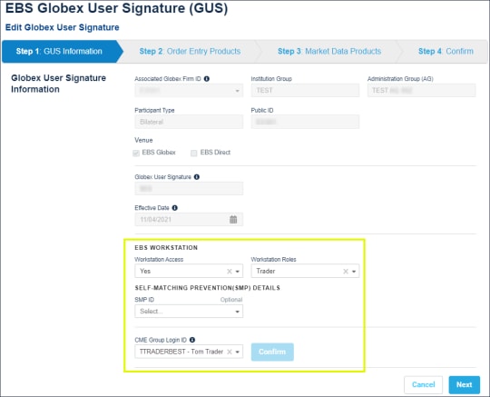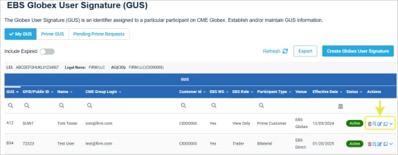 The following instructions illustrate the process to Edit Information for an existing Globex User Signature (GUS) and the associated Globex Firm ID (GFID).
