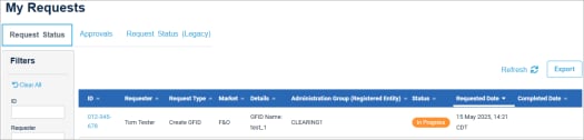 - Effective Date (default: today's date): Upon admin approval, GFIDs are available on the specified date.