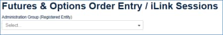 The following instructions illustrate the process to access Futures and Options - Order Entry / iLink Sessions to view and manage market participant identifiers and their exchange / clearing firm associations.