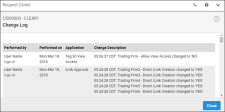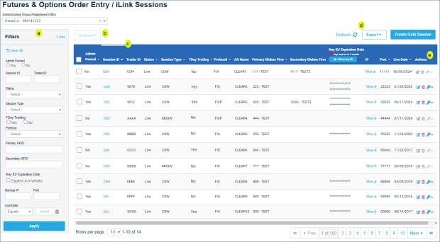 - Request Center - iLink Sessions - Read Only: View Order Entry / iLink sessions and status.