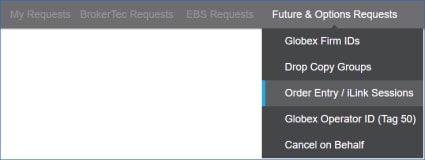 - From the Futures & Options Requests menu, select Order Entry / iLink Sessions.