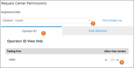 Note: To enable trading firms to register Operator IDs, assign user entitlements (Request Center - Operator ID Full Access).