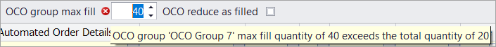 Users attempting to enter an OCO Order Max Fill quantity greater than the order quantity receive a notification of the allowable Max Fill range.