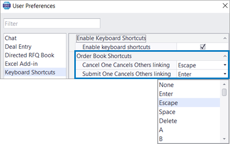 Keyboard Shortcuts > Order Book Shortcuts > Cancel One Cancels Others linking |