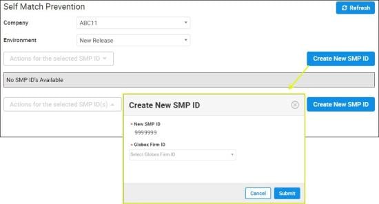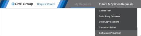 - From the Request Center > / / menu, select Self Match Prevention, then select a Company and Environment on the page that appears.