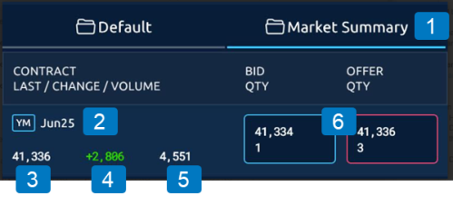 Tap the Market icon on the toolbar to view market data for a select product group: