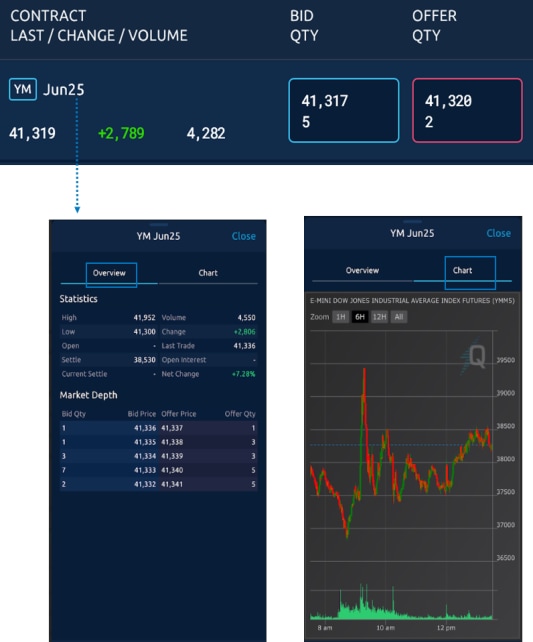 - Tap a contract to display a statistics Overview and Chart