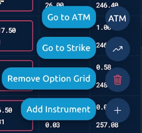 - Go to ATM re-centers the options grid at current at the money strike
