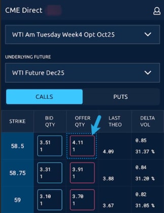 The Options Grid allows users to aggress and enter Options orders from the market data grid and take a position in an Option.