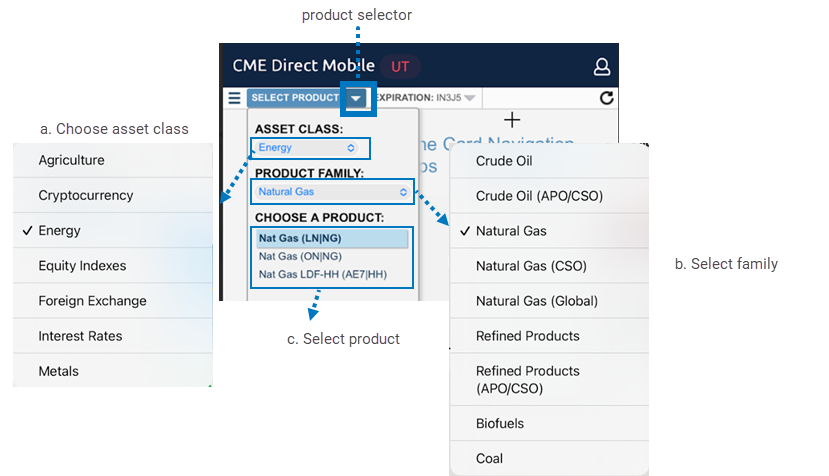 - Use the Product selector to define the asset class, product family, and Product.