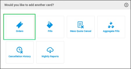 Use the Orders card to search for current market orders and to cancel unfilled orders.