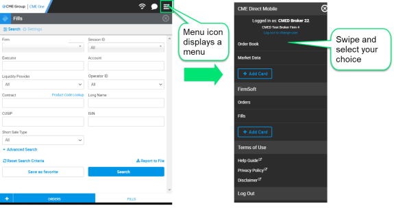 Due to the limited visual capacity of smaller devices/screen size (e.g., smart phones), select the Menu icon