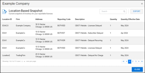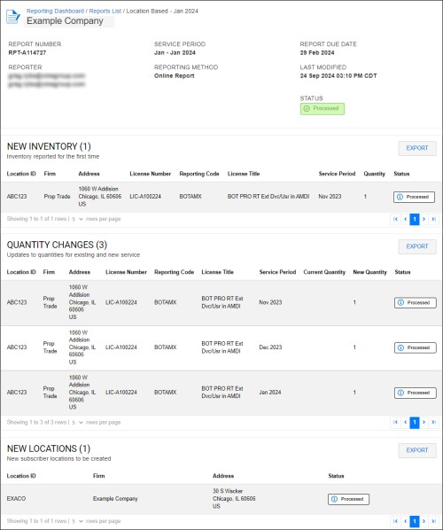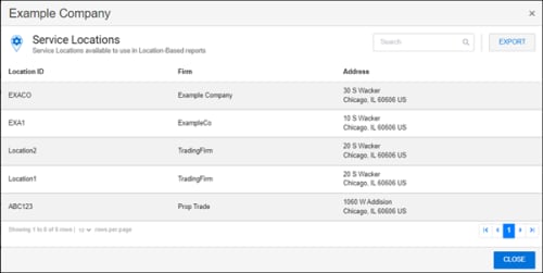 - Service Locations - displays the Location ID, Firm, and Address for monthly location-based reporting. You can also EXPORT and download this data.