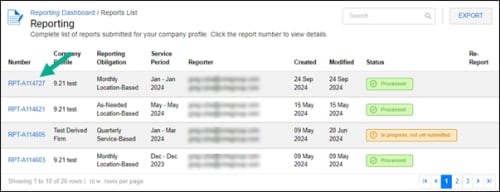 - Past Reports - displays the list of past reports. You can also EXPORT and download these reports.
