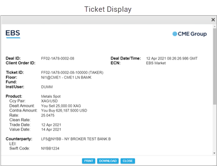 Double-click a Deal row in the grid to open a Ticket view containing details of the individual trade.
