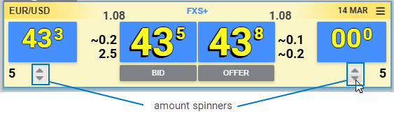- Hover over the Active price card to display the Spread spinners. Use the spinners to change the spread view for the nearest Reg spot price. The displayed inventory represents the accumulated available amount from ToB price.