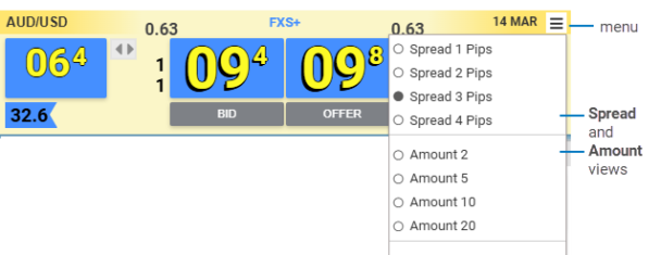 Top of Book inventory indicators displayed to the sides of each of price tiles represent inventory expressed in millions available at the best dealable price. Display of the 2nd level can be disabled from User Settings.
