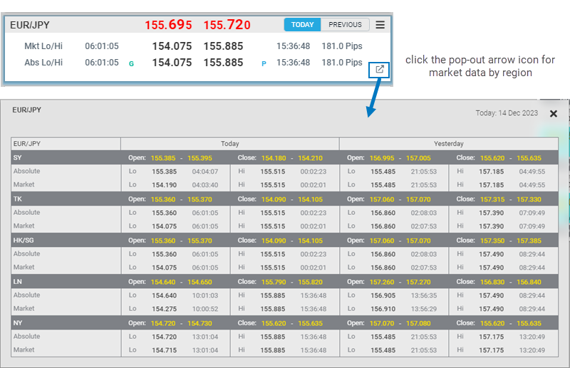 - Absolute Low and High: Highest and Lowest rates dealt in a currency pair