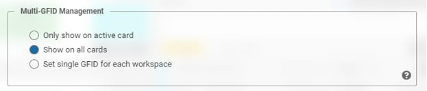 Users can choose to show the GFID indicator on the active card only or all cards. For users with enabled multiple Workspaces, there is additional option to a specific GFID to an entire Workspace.