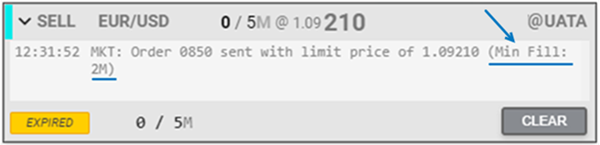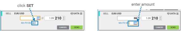 Users can set Min Fill Quantity on IOC orders sent to EBS Market. This option is available on the Order Form and, if specified, the order will be Filled for at least this quantity or else will expire as Not Filled.