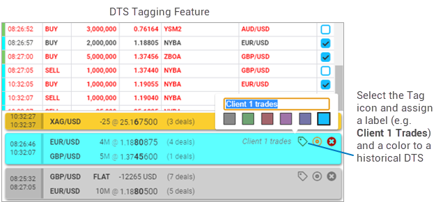 When tracking multiple historical DTS, tag the DTS with a label and color to differentiate the different historical DTS.