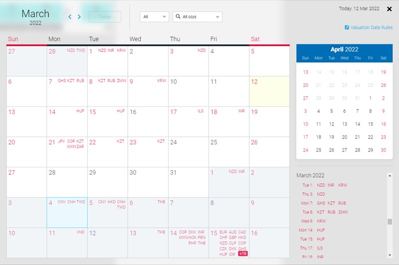 Click the All instrument and All ccys filters to view value dates for all pairs.