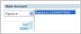 The User can search for Main Account(s) that ‘Begins with’, ‘Contains’, ‘Ends with’ or ‘Equals’ a string of characters entered into the textbox.