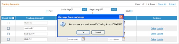- The User can either designate individual Trading Accounts to be updated by selecting the check box in front of each account, or the User may designate all the Trading Accounts displayed on the screen to be updated by selecting the Check All box.