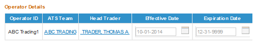 - The screen will refresh to display the Operator Details as read-only text. If information was entered incorrectly, click Cancel to return to the previous screen. The User may also select the link to the Head Trader to return to Individual Details for that Head Trader. The screen will clear out the Operator ID which was previously entered when either option is selected.
