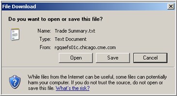 - A File Download message box will appear - click OPEN to open the file and the data will display in Notepad; click SAVE to save the report; or click CANCEL to exit.