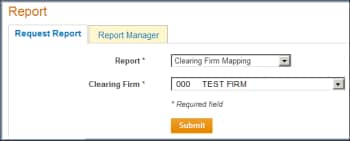 Clearing firm administrators use report features to search for registration, system entitlements, and system details for their clearing firm.