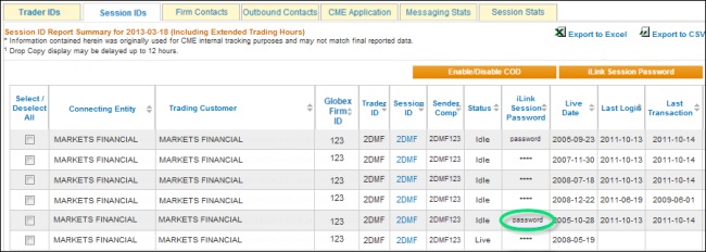 Clearing firm administrators and Globex firm users use this function to unmask iLink session passwords for iLink sessions.