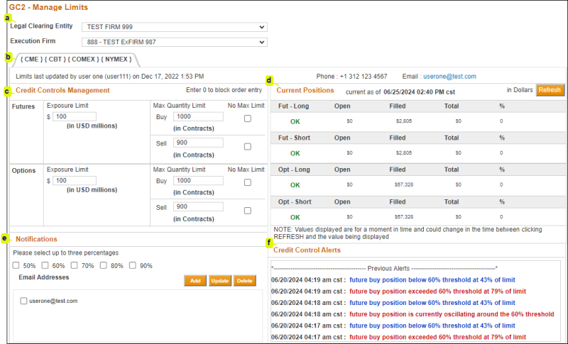 - Credit Controls Management: To enable trading, the GC2 Risk Administrator must enter the Exposure Limit / Max Quantity Limits for Futures and Options for each Executing Firm ID / Exchange group.