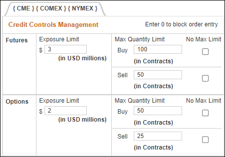 - Enter the Futures and Options Exposure Limit.