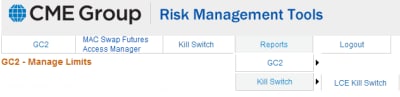 - From the CME Group Risk Management Tools window, select Reports>Kill Switch> Firm Kill Switch,