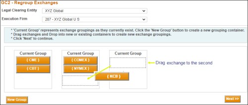 - Drag the exchange button to a different group. In this example, MGE was moved to the second group.