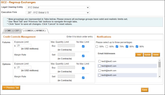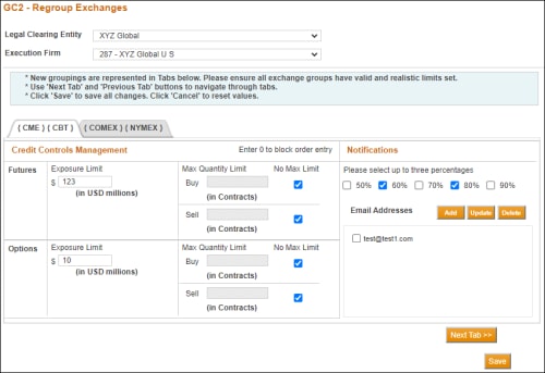 Note: On Exchange tabs, All Execution Firms must have Exposure Limits.
