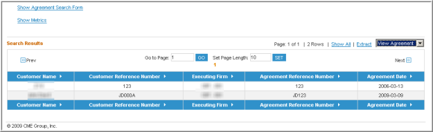 Your result set should now contain the List of Agreements based on your specified criteria in the search form.