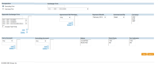 - Exchange Firm - All of the firms for CME, CBOT and OCC that you have authority to view. Input the 3-digit firm id into the text box or make a selection in the drop-down.