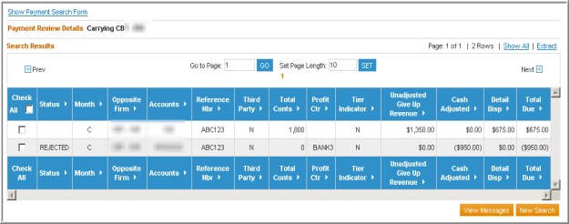 After searching for payments, carrying firms may use the Payment Review page to reject and accept payments.