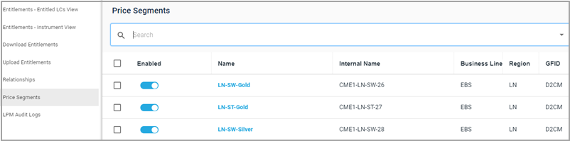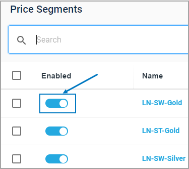 Use the Price Segments screen to view details for a price segment, enable or disable price segments, and modify the price segment name and add or modify the description.